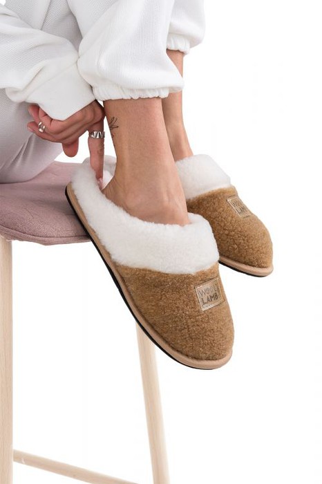 Совместные покупки Пермь Женская обувь Домашняя обувь — ШЛЕПАНЦЫ С ОПУШКОЙ ВАЛЕНСИЯ КЕМЕЛ