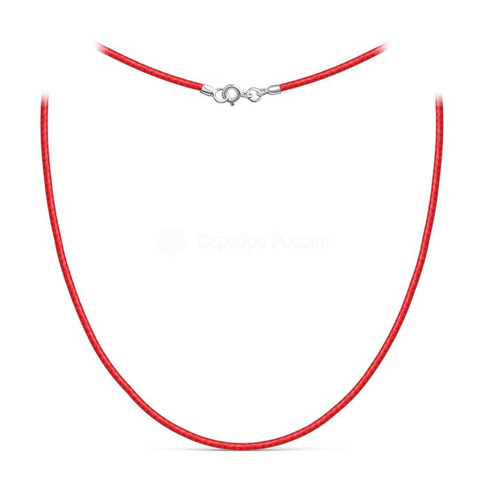 Шнурок текстильный (вощёный) красный с замком из родированного серебра