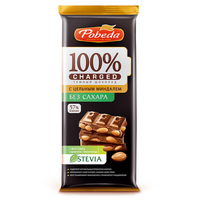 Шоколад ПОБЕДА Charged Темный Миндаль (без сахара)