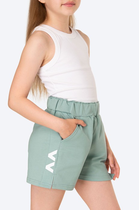 Стильные летние шортики украшены фирменным знаком с ушками. По бокам располагаются удобные карманы для необходимых мелочей. Детские шорты представлены в зеленом цвете.