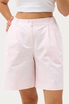 Шорты выполнены из плательной ткани. Шорты расширены к низу, низ шорт на манжетах. Талия завышена. Карманы в боковых швах. Пояс притачной, завязывающийся на бант, частично на эластичной тесьме.