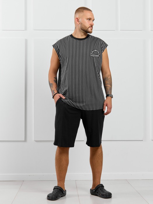 Базовые шорты из однотонного полотна кулирного переплетения черного цвета. Модель с боковыми карманами с обтачными входами, на притачном поясе с отстроченной эластичной тесьмой.