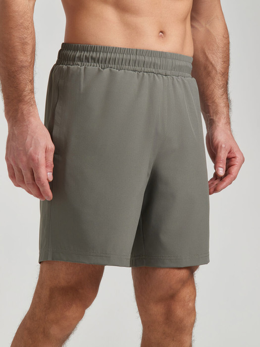 Классические мужские шорты из легкой эластичной плащевки. В боковых швах обработаны карманы. Пояс шорт по талии регулируется шнуром.