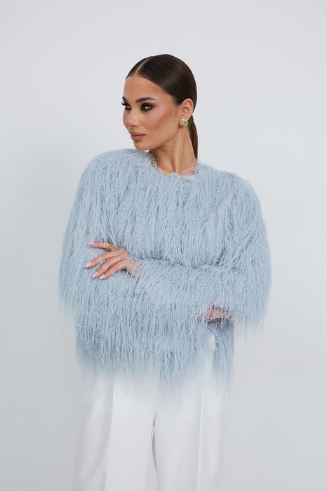 Жакет женский, из костюмно-плательной ткани с эффектом «травка», укороченный, прямого силуэта с центральной застежкой на три кнопки. Рукава длинные, слегка расширенные книзу, жакет на подкладке. Жакет прекрасно дополнит любой вечерний образ.