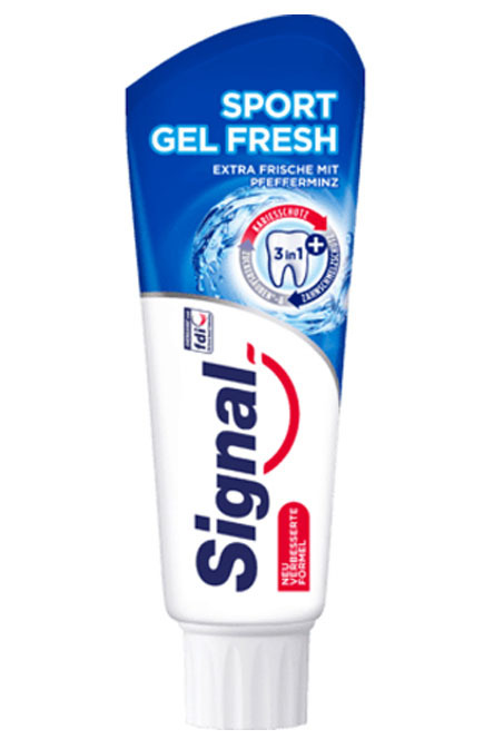 Signal Sport Gel - это зубная паста с невероятной свежестью. Защитная формула 3 в 1 защищает зубную эмаль, защищает от кариеса и предотвращает образование сахарных кислот.