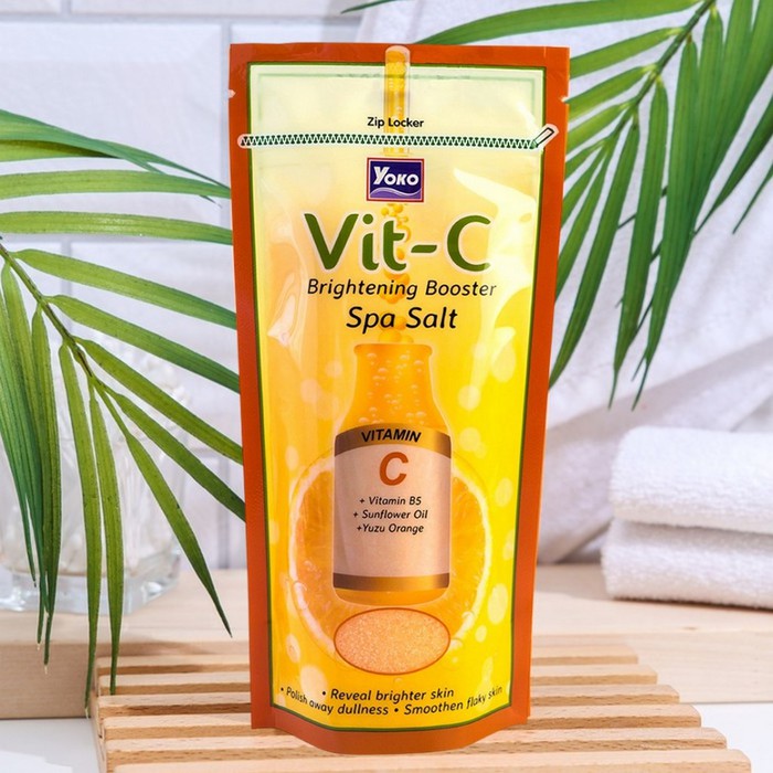 Солевой скраб для тела с ВИТАМИНОМ С для сияния кожи Yoko VIT-C Spa Salt делает кожу сияющей, выравнивает тон, увлажняет, питает и оздоравливают кожу, способствует выведению токсинов из клеток эпидермиса, тонизирует и витаминизирует кожу. После использования скраба кожа становится гладкой, подтянутой и нежной.Повышенное содержание Витамина С, а также витамин В5 помогают выровнять тон кожи и улучшить её внешний вид.Солевой скраб глубоко увлажняет и очищает кожу тела, кожу подмышек и зоны бикини, осветляет пигментные пятна. Обладает тонизирующим действием, способствует омоложению кожи. Соляная база скраба оживит кожу, сделает её мягкой, гладкой и эластичной. Кроме того, применение солевого скраба для тела Yoko VIT-C Spa Salt препятствует формированию целлюлита в потенциальных проблемных участках. После 1 применения кожа более гладкая и увлажненная.Через 7-10 применений нормализуется гидро-липидная мантия, уменьшается размер пор, восстанавливается естественная защита. Кожа приобретает здоровый оттенок, гладкость и нежность.Основные свойства солевого спа-скраба для тела с витамином С Yoko VIT-C Spa Salt:• Глубоко очищает поры • Выводит токсины • Нормализует секреторную функцию сальных желез • Сужает поры, избавляет от черных точек • Увлажняет, восстанавливает водно-жировой баланс кожи • Избавляет от сухости и шелушения • Восстанавливает защитные функции эпидермиса • Придает ровный оттенок, эластичность и нежность, Способ применения: Насыпьте нужное количество соли в ладонь и нанесите мягкими круговыми движениями на влажную кожу, оставьте впитываться на 3 минуты, затем смойте водой. Будьте осторожны с кожей шеи и груди. Не рекомендуется использовать скраб для кожи лица и шеи.