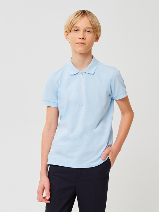 Поло из 100% хлопка с короткими рукавами, отложным воротником рубашечного типа, с центральной укороченной застежкой по переду на молнии.