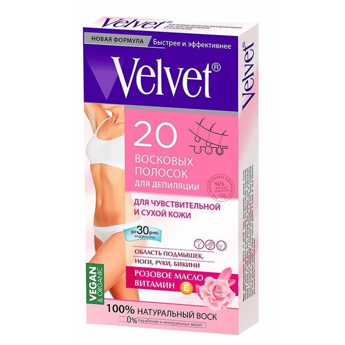 Благодаря новой гелевой формуле воск быстрее приобретает оптимальную для удаления волос температуру, а, кроме того, обеспечивает более тщательное и плотное прилегание полоски к волоскам, позволяя удалять даже самые тонкие и короткие волосы вместе с луковицей.
