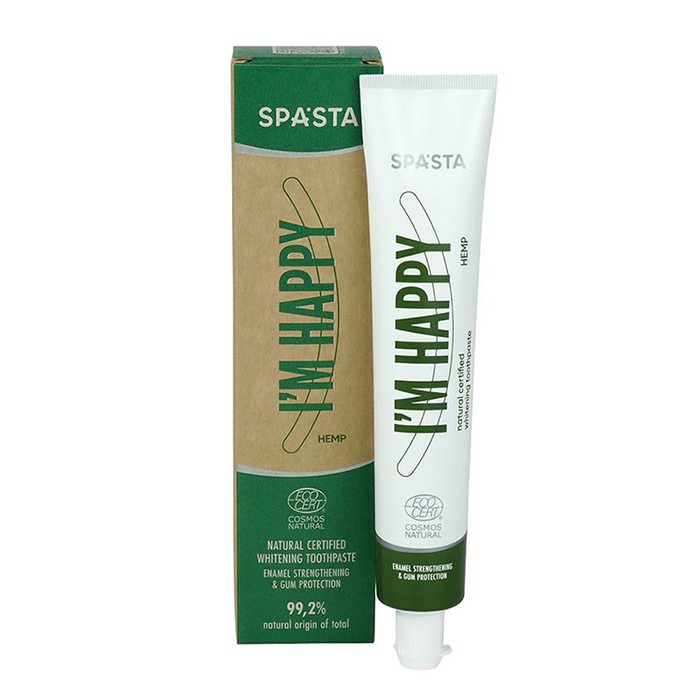Натуральная сертифицированная отбеливающая зубная паста IM HAPPY содержит 99,2% ингредиентов натурального происхождения и обеспечивает: