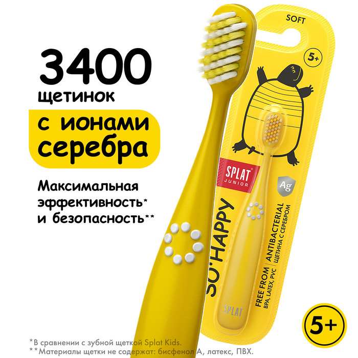 Совместные покупки Пермь Хозтовары и личная гигиена Гигиена полости рта — SPLAT Juicy Детская жёлтая зубная щётка So Heppy от 5 лет