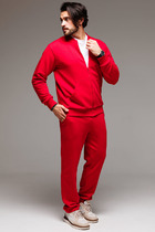 Для образа игрока в гольф не хватает воротничка! Воротник - деталь свитшота с застежкой поло, которая почекнет весь аутфит. Брюки со стрелками добавят образу строгости и деловитости, что позволит носить костюм как на прогулки, так и в офис. Пошит из комфортной ткани - футера 3-нитки без начеса.