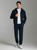Современная модель мужского костюма из жаккардового трикотажного полотна. Куртка с капюшоном, на молнии, с карманом-кенгуру. Рукава покроя реглан, выполнены из контрастного трикотажного полотна. По низу куртки слегка заужен поясом, рукава с манжетами. Карманы брюк прорезные, наклонные. Низ брюк с манжетами. Пояс брюк эластичный, дополнительно регулируется шнуром. На слева на груди и на левой брючине под карманом - фирменный логотип. На правый рукав логотип нанесен методом термопечати.
