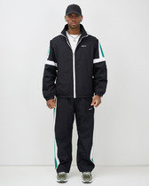Современная модель мужского костюма из жаккардового трикотажного полотна. Куртка с капюшоном, на молнии, с карманом-кенгуру. Рукава покроя реглан, выполнены из контрастного трикотажного полотна. По низу куртки слегка заужен поясом, рукава с манжетами. Карманы брюк прорезные, наклонные. Низ брюк с манжетами. Пояс брюк эластичный, дополнительно регулируется шнуром. На слева на груди и на левой брючине под карманом - фирменный логотип. На правый рукав логотип нанесен методом термопечати.
