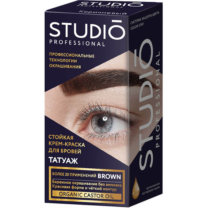 Совместные покупки Пермь Косметика и парфюмерия Средства для бровей — STUDIO Краска д/бровей и ресниц Темно-коричневый с эфф.татуажа, 30/20мл (50656