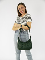 Сумка женская с двумя отделениями, закрывающимися на молнию. Есть домолнительный врезной карман во внутренней кокетке. На задней стенке карман на молнии. Внутри карман на молнии и карман для сотового. Высота ручек 170 мм. Съемный ремень 1200 мм. Размеры 320х240х160