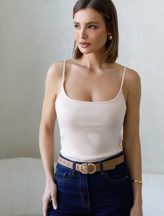 Состав: 95%Хлопок 5%ПУ Плотность: 170 Г/м2Идеальный базовый супер-эластичный топ облегающего кроя приятного светло-бежевого цвета в выполнен из премиального трикотажа риб 1*1. Ткань приятна на ощупь, имеет отличную воздухопроницаемость, что обеспечивает комфорт в жаркую погоду, в тоже время не просвечивает, выглядит дорого. Открытое декольте и аккуратные тонкие регулируемые бретели деликатно подчеркнут изящную шею и плечи.
