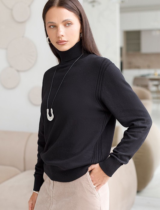 Состав: 70%Хлопок 21%ПА 9%Кашемир Плотность: 12 GG Размер товара на первом фото: 42Свитер тонкой вязки выполнен из хлопка с добавлением кашемира. Лаконичная модель дополнена декоративными швами и металлическим логотипом бренда. Мягкая и очень приятная пряжа совершенно не колется, сохраняет тепло при этом не перегревая, гарантируя безупречный комфорт.