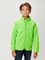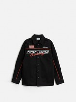 Свитшот прямого силуэта с втачными длинными рукавами, по линии низа имитация текстильной рубашки. Изделие выполнено из полотен контрастного цвета и разной текстуры, на полочке есть принт. Горловина круглая и обработана притачной бейкой. В качестве дополни