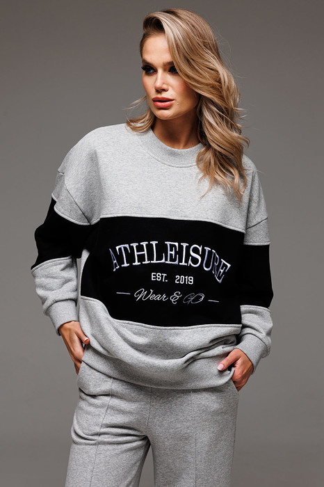 Стильный оверсайз свитшот с контрастной вставкой и вышивкой Athleisure станем любимым в гардеробе и составит идеальный образ с джинсами, леггинсами, шортами, юбкой и даже платьем. Athleisure - расслабленный и непринужденный стиль, основанный по большей части на спортивных базовых вещах. По сути, это даже не стиль, а способ носить базовые спортивные вещи.
