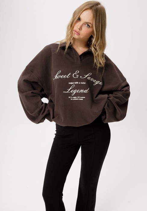 Оверсайз свитшот с воротником поло из трехнитки с эффектом бархата.