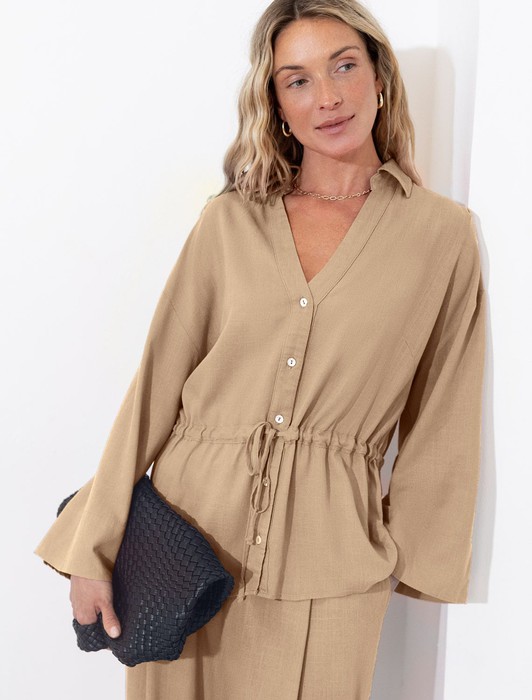 Совместные покупки Пермь Женская одежда Костюмы, комплекты — Свободная блузка с кулиской на талии изо льна с вискозой