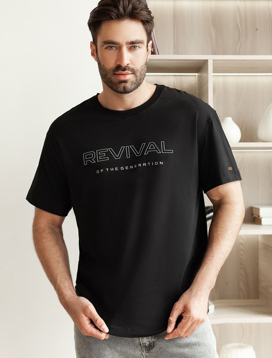 Состав: 92%Хлопок 8%ПУ Плотность: 170 Г/м2Перевод принта: Revival of the generation - возрождение поколения. Футболка свободного кроя выполнена из премиального хлопка. Авторский принт нанесен красками с устойчивым покрытием. Благодаря эластану, носить изделие очень комфортно, и оно сохранит свой безупречный вид в течение долгого времени. На рукаве нашивка из эко-кожи с логотипом бренда.