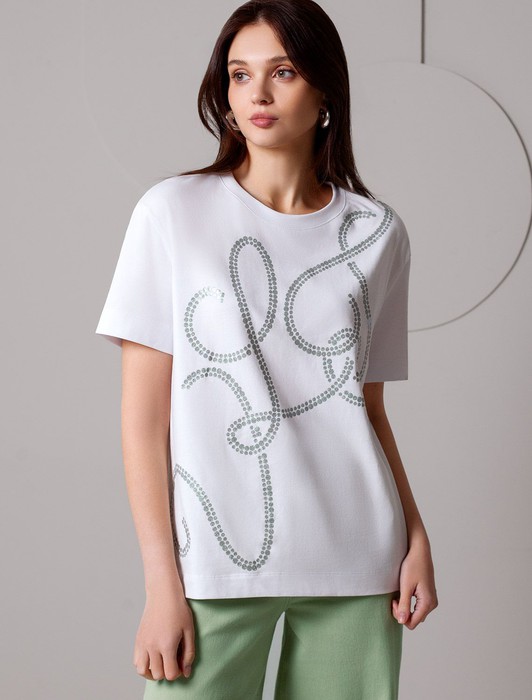 Состав: 92%Хлопок 8%ПУ Плотность: 170 Г/м2Модная футболка белого цвета привлекает внимание своим интересным дизайном и ярким принтом. Благодаря прямому крою изделие комфортно садится на любую фигуру, в том числе на большие размеры, и не сковывает движений. Круглый вырез подчеркивает современный стиль, а натуральный материал из хлопка с добавлением эластана обеспечивает удобство в повседневной носке и приятные тактильные ощущения. Прочность и износостойкая структура позволяют сохранять свежий внешний вид после множества стирок. Принт в виде букв логотипа бренда нанесен красками с устойчивым покрытием. Стильная футболка гармонично вписывается в любой гардероб и подойдет для прогулок, отдыха или неформальных встреч. Благодаря особенностям кроя модель хорошо сидит, скрывая недостатки и подчеркивая достоинства. Яркая футболка идеально сочетается с базовыми вещами, позволяя создавать новые интересные образы каждый день.