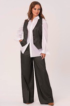 Состав: 70%Лиоцелл (Вис) 30%ПЭ Параметры модели на первом фото: Рост 172, бюст 88, талия 64, бедра 88Брюки свободного кроя выполнены из плотного лиоцелла. Модель дополнена карманами и поясом с эластичной резинкой и регулируемым шнурком с золотистой фурнитурой. Ткань изделия отлично держит форму, плавно драпируется и не просвечивает. В теплое время года приятно охлаждает кожу. Добавление синтетических волокон в составе изделия, предотвращает сминаемостьи поддерживает формоустойчивость. Брюки сочетаются в костюме с топом D23.063, блузкой D29.266, D29.267 и жилетом D27.002