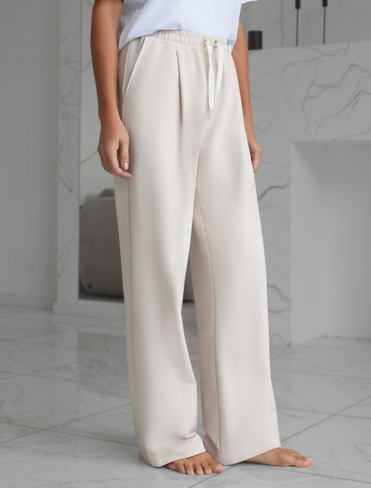 Состав: 75%Хлопок 20%ПЭ 5%ПУ Плотность: 260 Г/м2 Параметры модели на первом фото: Рост 170, бюст 89, талия 63, бедра 92Брюки свободного кроя выполнены из эластичного футера-двухнитки. Модель дополнена защипами и боковыми карманами как у классических брюк и одним задним карманом. Эластичный пояс на резинке с шнурком из репсовой ленты и металлической фурнитурой. Брюки сочетаются в костюме с футболкой D49.031, D49.085, бомбером D49.038 и паркой D49.075