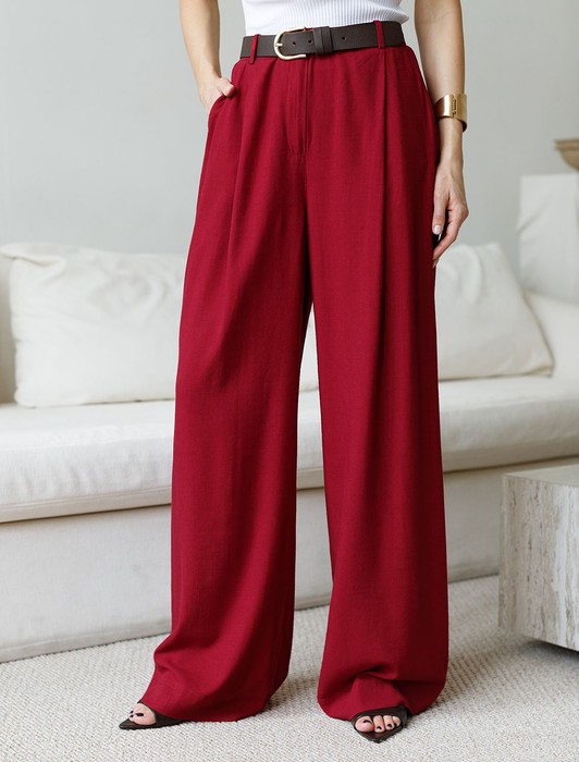Состав: 70%Вис 30%Лен Плотность: 200 Г/м2Свободные брюки палаццо гранатового цвета изо льна с вискозой, плотностью 200 Г/м2 — выбор, который легко выделит в любой обстановке. Свободные длинные брюки с высокой посадкой создают идеальный силуэт, визуально вытягивают и стройнят фигуру. Натуральный состав ткани обладает высокой воздухопроницаемостью, хорошо драпируется и мягко прилегает к фигуре, создавая струящиеся складки. Мягкая эластичная резинка, встроенная в пояс брюк, обеспечивает идеальную посадку по фигуре, не сдавливая талию и гарантируя максимальный комфорт при движении. В повседневных брюках будет очень комфортно, благодаря правильной регуляции температуры тела. Брюки подходят на маленький и высокий рост, а так же на любую фигуру, позволяя подчеркнуть достоинства и скрыть возможные недостатки. Летние льняные брюки отлично сочетаются с монохромным верхом для вытягивания силуэта, с ними можно создавать эффектные наряды как на выход, так и для ежедневных рабочих дел или простых прогулок, от делового шика до повседневного кэжуал.