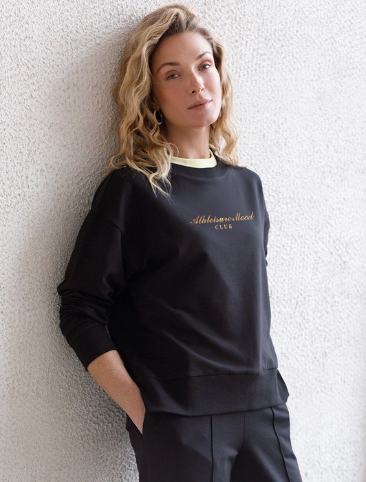 Состав: 95%Хлопок 5%ПУ Плотность: 240 Г/м2Стильный свитшот черного цвета из премиального футера двухнитки с эластаном сочетает в себе комфорт и оригинальность. Джемпер выполнен из натурального хлопка, который обеспечивает мягкость и дышащие свойства ткани. Нежный материал дарит ощущение уюта в любое время года, а премиальное качество изготовления гарантирует долговечность и сохранение формы после множества стирок. Особенность изделия — спущенная линия плеча и аккуратные разрезы, которые добавляют современный акцент и делают образ более выразительным. Принт в виде надписи придает индивидуальность, позволяя выделиться без лишней вычурности. Перевод надписи Athleisure mood club - Клуб спортивного настроения. Дополнен металлическим логотипом бренда. Представлена широкая размерная линейка, включая маленькие и большие размеры, что позволяет подобрать идеальный вариант для разной фигуры и роста. Этот уютный свитшот отлично подходит для повседневной носки благодаря своей комфортной посадке и мягкой текстуре. Он станет универсальным элементом гардероба, легко сочетающимся с различными стилями одежды. Свободный джемпер из футера станет отличным выбором для активного отдыха, обеспечивая стильный внешний вид и удобство весной, летом или в прохладную погоду.