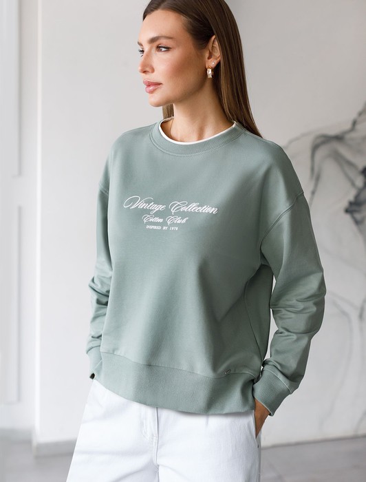 Состав: 95%Хлопок 5%ПУ Плотность: 240 Г/м2Стильный свитшот светло-оливкового цвета из премиального футера двухнитки с эластаном сочетает в себе комфорт и оригинальность. Джемпер выполнен из натурального хлопка, который обеспечивает мягкость и дышащие свойства ткани. Нежный материал дарит ощущение уюта в любое время года, а премиальное качество изготовления гарантирует долговечность и сохранение формы после множества стирок. Особенность изделия — спущенная линия плеча и аккуратные разрезы, которые добавляют современный акцент и делают образ более выразительным. Эффект имитации футболки в виде белой отделки на вороте делает дизайн динамичным и повышает градус стиля. Принт в виде надписи придает индивидуальность, позволяя выделиться без лишней вычурности. Перевод надписи Vintage collection Cotton club Inspired by 1978 - Винтажная коллекция Cotton Club, вдохновленная 1978 годом. Дополнен металлическим логотипом бренда. Представлена широкая размерная линейка, включая маленькие и большие размеры, что позволяет подобрать идеальный вариант для разной фигуры и роста. Этот уютный свитшот отлично подходит для повседневной носки благодаря своей комфортной посадке и мягкой текстуре. Он станет универсальным элементом гардероба, легко сочетающимся с различными стилями одежды. Свободный джемпер из футера станет отличным выбором для активного отдыха, обеспечивая стильный внешний вид и удобство весной, летом или в прохладную погоду.