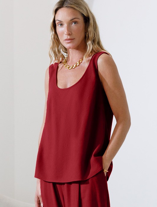 Состав: 70%Вис 30%Лен Плотность: 200 Г/м2Лаконичный топ гранатового цвета без застежек с U-вырезом выполнен изо льна с вискозой, плотносью 200 Г/м2. Сочетание льна и вискозы обеспечивает комфорт и прохладу в жаркие дни. Свободный топ на широких бретелях будет идеальным выбором для лета и весны, позволяя ощущать комфорт даже при высокой температуре воздуха. Особенность этого летнего топа — шитый по косой, он хорошо драпируется и мягко прилегает к фигуре, создавая струящиеся складки. Свободный крой топа обеспечивает комфорт, легкость и свободу движений, открытое декольте подчеркивает изысканность образа и женственность силуэта. Этот красивый топ подойдет для создания любого стильного повседневного образа, на работу или на важное мероприятие.