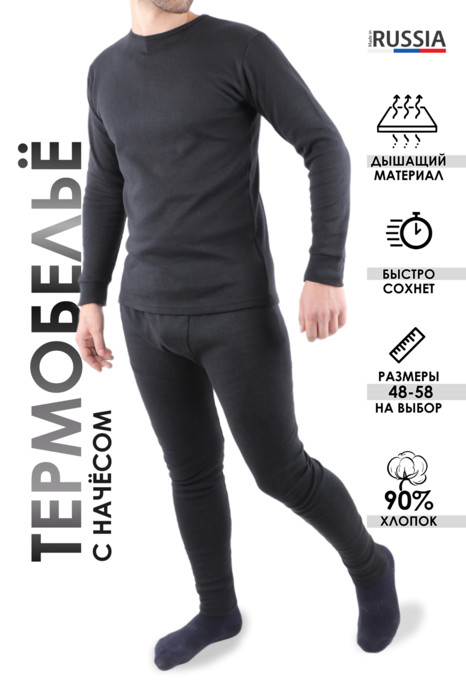 Мужское термобелье из хлопка с начесом. Состав 90% хлопок, 10% полиэстер. Рассчитано на среднюю и низкую активность в прохладную погоду