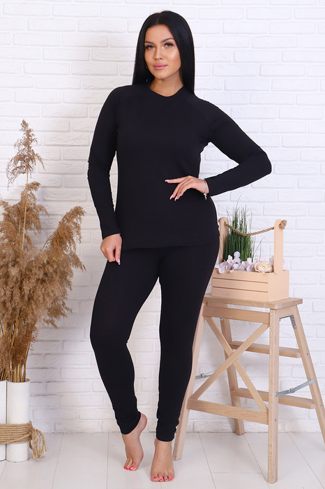 Комплект женского нательного термобелья - джемпер с рукавом+лосины. Воротник-стойка, закрытая резинка. Хорошо облегает тело, отводит влагу, сохраняет температурный баланс тела в прохладную погоду, абсолютно незаметно под верхней одеждой. Подходит для повседневной носки и активного отдыха.