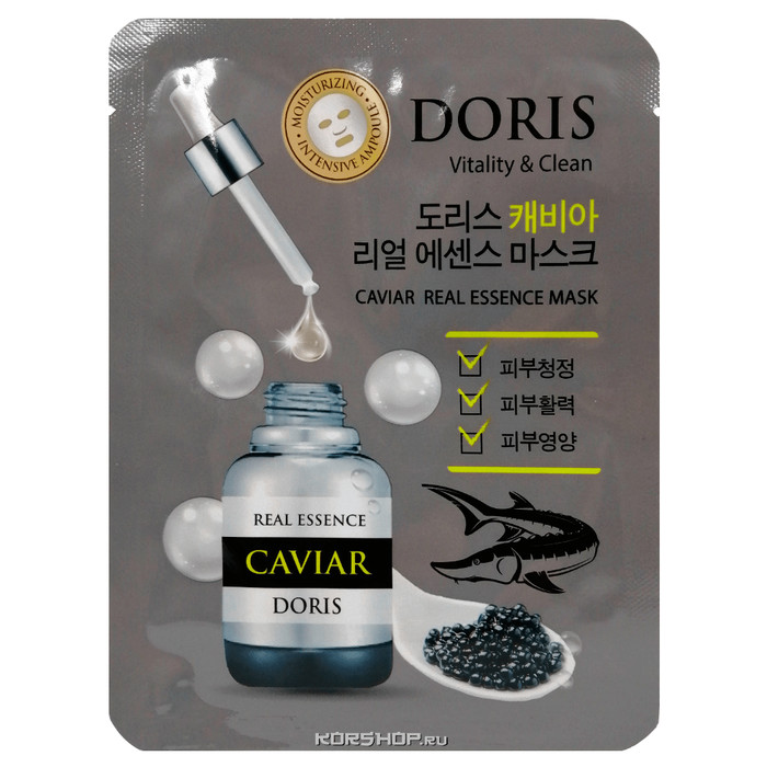 Тканевая маска для лица с экстрактом черной икры Real Essence Doris от торговой марки Jigott витаминизирует кожу и активирует ее защитные функции. Благодаря ей усиливается синтез собственных эластина и коллагена, вследствие чего повышается упругость. Это отличное омолаживающее средство, которое подходит для регулярного использования. Купить тканевую маску для лица с экстрактом черной икры Real Essence Doris Jigott с доставкой на дом по Москве и Подмосковью можно в интернет-магазине KorShop.ru.