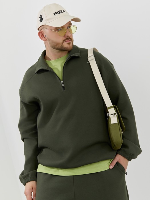Толстовка мужская из трикотажного полотна "интерло-пике". Толстовка свободного покроя, с длинными втачными рукавами, заниженными проймами и воротником-стойкой. Полочка с кокетками, с неразъемной застежкой "молния", обработанной в рамке. Нижние срезы рукавов обработаны с эластичной тесьмой, нижний срез изделия - подгибкой, с эластичным шнуром и фиксаторлм для регулировки ширины изделия на этом участке.