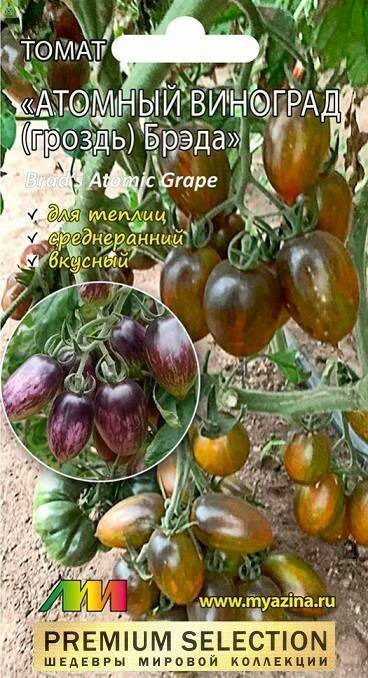 Американский, индетерминантный, среднеранний, урожайный, экзотический сорт для теплиц и открытого грунта. Куст индетерминантного типа, высотой 180 см, в теплице, в огороде чуть ниже. Кисти сложные, напоминают грозди винограда. Плоды вытянутые сливовидные 40-50 гр. В стадии зрелости коричнево-красные с зелеными полосами и штрихами с фиолетовым напылением. Вкус фруктовый, сладкий. Не трескаются и хорошо держатся на кисти (не осыпаются). Семена на рассаду сеют за 60-65 дней до предполагаемой высадки в грунт. Пикирование сеянцев - на стадии двух настоящих листьев. При высадке рассады на постоянное место на 1 кв. метре подготовленного участка размещают до 4-х растений. Дальнейший уход за томатами состоит из своевременного полива, пасынкования, удаления сорняков и профилактических мероприятий по защите от болезней и вредителей.