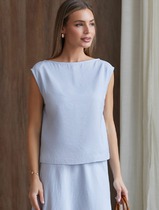 22.03 Vilatte Топ c вырезом лодочка из плотного лиоцелла D23.079 голубой