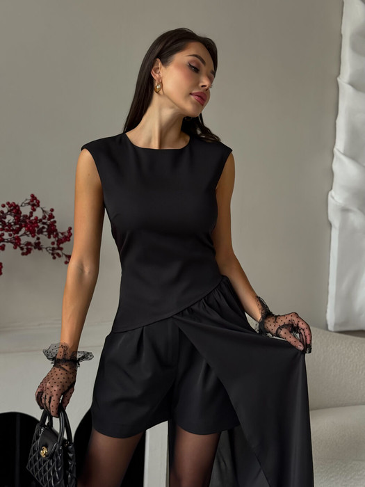 Элегантный топ с асимметричным низом и шлейфом из шифона. Это акцентное изделие идеально сочетается с шифоновой юбкой, но также с легкостью интегрируется в гардероб после новогодней ночи: сочетайте его с брюками, джинсами и юбками. Топ на шнуровке по спинке, прилегает по фигуре, подчеркивая силуэт. Спущенная линия плеча. Застежка на потайную молнию.