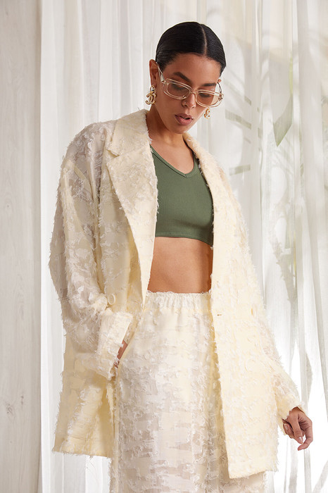 Топ выполнен из трикотажного хлопкового полотна в рубчик. V-образная горловина. Фигурная спинка.