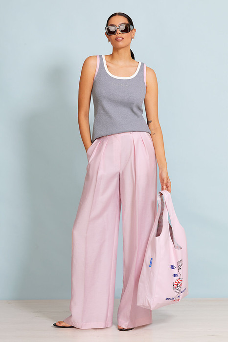 Топ  выполнен из трикотажного полотна в рубчик. Изделие  приталенное. Горловина круглая. Линия плеча зауженная. На полочке термоапликация. Горловина и пройма обработаны отделочной тканью