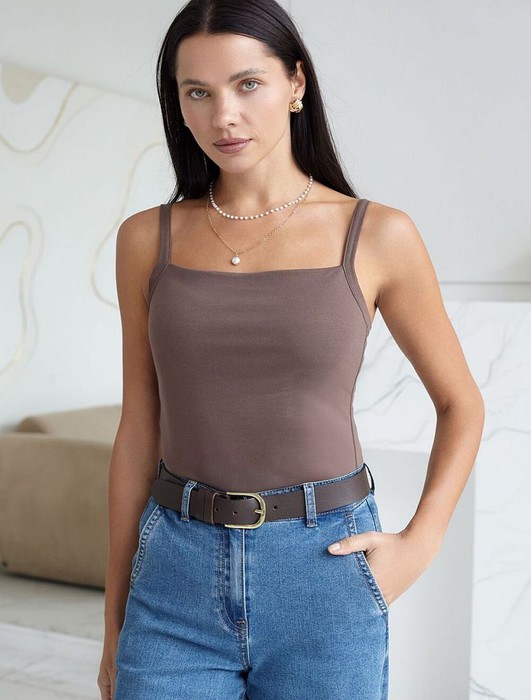 Стильный и базовый топ черного цвета полуприлегающего кроя идеально подходит для девушек и женщин всех возрастов. Двуслойная зона бра. Линия декольте образована посредством сгиба полотна без отсрочки и закреплением обоих слоев в шве проймы. Удобные регулируемые бретели. Прямой силуэт подходит любому типу фигуры. Квадратный вырез горловины - тренд этого сезона. Он выполнен из качественной дышащей ткани, что обеспечивает комфорт в жаркую погоду. Однотонный дизайн позволяет легко сочетать его с различными предметами гардероба, создавая элегантный повседневный образ.