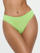 Трусики из принтованного эластичного материала со отделкой из кружева. Передняя деталь декорирована атласным бантиком. Широкая боковина.