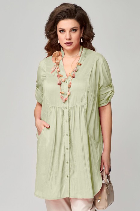 Туника "Медея" — это воплощение женственности и изящества, где каждая деталь продумана до мелочей. Свободный силуэт дарит легкость и комфорт, позволяя ткани мягко струиться, подчеркивая естественную грацию движений. Изящный фигурный вырез горловины, дополненный отрезными планками, придает образу нотку элегантности, а высокий воротник-стойка добавляет благородного шарма.