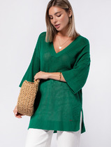 Vilatte Туника полупрозрачной вязки из хлопка с вискозой D39.279 зеленый