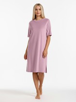 Модная полосатая туника из кулирки. Светлые и темные горизонтальные полоски, принт в виде изображения косметики, губ и надписей, по бокам имеются карманы, общая длина чуть выше коленей, рукава короткие. Может быть парой детской тунике Меренга (продается отдельно). Размеры от 42 до 52. Возможна розница.