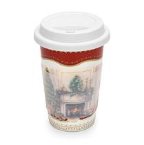 Фарфоровый стакан 350 мл с силиконовой крышкой Christmas eve