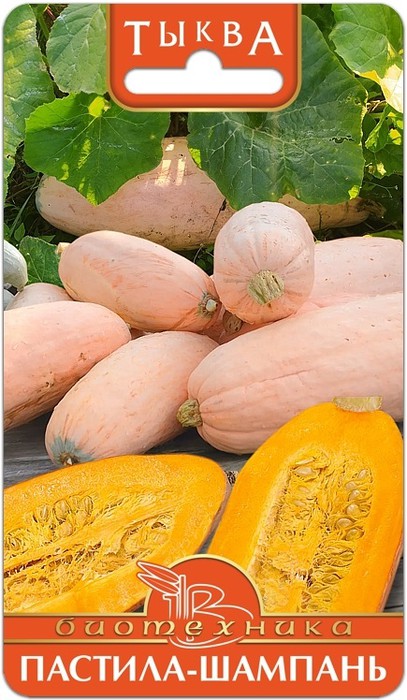 Растение плетистое. Плод имеет форму вытянутого эллипса. Окраска зрелого фона плода – розовая, с небольшой сетчатостью. Кора средней толщины. Мякоть ярко-оранжевого цвета, занимает почти все внутреннее пространство, семенная камера небольшая, вытянутая по длине плода. Тыква плотная, хрустящая с великолепным ароматом. Вес плода 6-8 кг. Обладает отличной лежкостью.
