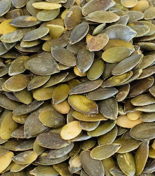 Тыквенная семечка насыщенна различными микроэлементами - вкусный, питательный и полезный продукт. Семена тыквы - источник клетчатки и мононенасыщенных жирных кислот, защищающих сердечно-сосудистую систему. Они богаты жирными кислотами Омега-3. 100 г продукта обеспечат организм человека суточной нормой железа и 17 процентами дневной нормы селена. В семечках присутствует аминокислота триптофан, необходимая для выработки гормона удовольствия серотонина. Входящие в их состав магний, цинк и фосфор нормализуют работу головного мозга.Применение в кулинарии: Семечками посыпают кондитерские изделия, добавляют измельченными в различные блюда, используют при выпечке хлеба. Продукт можно использовать как добавку к супам, как ингредиент для кляра при приготовлении мясных блюд, как дополнение к кашам, салатам и к выпечке, и даже делать из них козинаки.